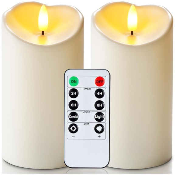 Homemory 6″x3″ Outdoor Waterproof Flameless Candles, LED Candles, Battery Operated Candles with Remote and Timers, Electric Fake Plastic Pillar Candles, Ivory White, Set of 2