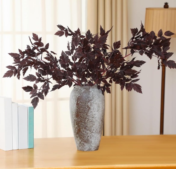 3 Pack Artificial Cimicifuga Plant Leaf Spray Faux Plum Cimicifuga Ramosa Leaf Branch Faux Fall Spray Silk Plants for Home Vase Wedding Garden Farmhouse Table Mantel Decor (32 Inches)